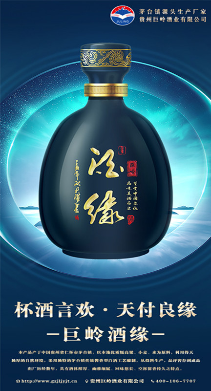贵州巨岭酒业有限公司,座落于闻名世界的古镇,国酒之乡“茅台镇”。与“国酒茅台”共享得天独厚的气候、土壤、水源、以及微生物群等自然资源;《巨岭酒业》老作坊前身“巨岭烧坊”,经过多年的传承,秉承先辈们代代相传的古法酿造工艺,历经几代人的延续和酿酒发展,奠定了《巨岭酒业》发展的坚实基础。 作为贵州茅台镇本土规模企业,《巨岭酒业》拥有传统发酵窖池200余口,年产优质酱香白酒近2600多吨,储酒能力12000多吨;并配有3条现代化包装生产线;公司现有职工300多名,有酿酒师15人,技术人员22人,本科以上学历管理人员12人,大专学历工作人员78人,是茅台古镇酱酒传承的白酒知名企业。 《巨岭酒业》励精图治与精益求精的发展理念,已成长为行业认可、社会公认的“规模酿酒企业”,酒业协会副会长单位”和“爱心企业”。 公司现在拥有:《巨岭酱酒》,《岭台》,《玉岭烧坊》,《酒缘》《情满壶》等上百个品牌产品,公司注重品牌发展,以《巨岭酱酒》为品牌核心,以个性化定制和尊贵封藏为营销模式,制定出“一核两柱”的销售模式。《巨岭酱酒》作为品牌主体,做扩展市场的排头先锋,全国布局,点线结合,网状布局,包括《巨岭》系列产品.... |